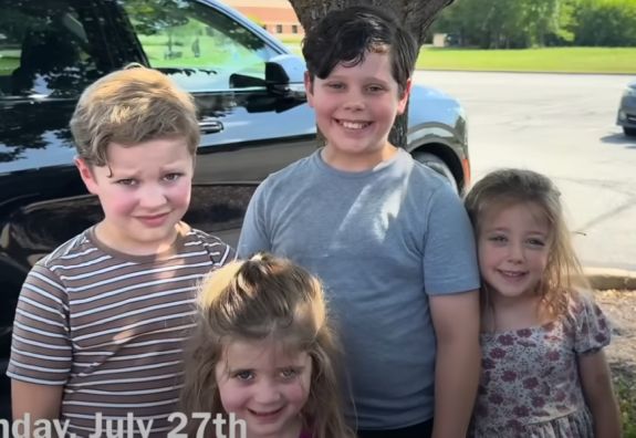 Jim Bob gets Jessa’s four oldest kids all lined up and in front of the camera to get their guesses on whether their newest sibling will be a boy or a girl. (You can tell Jimmy B was in charge of dressing these children, as most of them look like Depression-era orphans.)