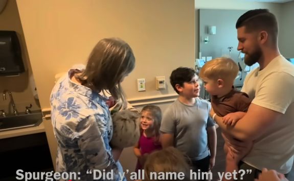 Jessa can be heard in the background telling Ben’s mom that it took her five days to come up with Spurgeon’s name, as well as Henry’s. Ben mentions that they’re considering naming this kid Edward.