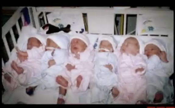 “I was just trying to see that ultrasound so bad and [the tech] was sort of shielding us from seeing,” Kate said. “At some point, she just got really quiet and I thought, ‘Here we go, it’s done,’ and I was really, really scared. All of a sudden, she said, ‘I see six,’ and I said, ‘You see six what?!’ and she said, ‘I see six heartbeats, they’re there.’”