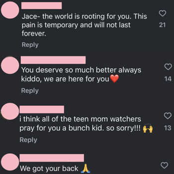 “You deserve so much better always kiddo, we are here for you,” one person wrote, with another adding, “I think all of the [‘Teen Mom’] watchers pray for you a bunch kid. So sorry!”