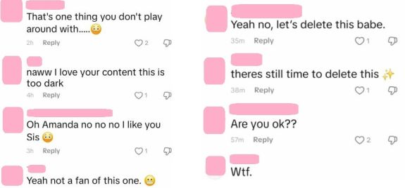 “Naww I love your content this is too dark,” someone else commented.