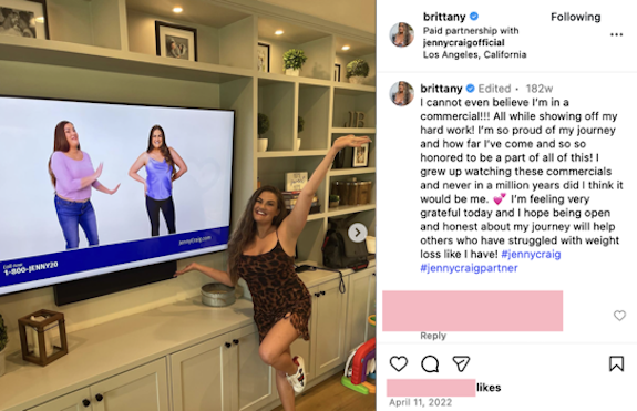 Brittany and her soon-to-be ex-husband Jax welcomed son Cruz in 2021. After scoring a partnership with the weight-loss company Jenny Craig, Brittany went on to reveal a 45-pound weight loss the following year. Years later, on the series premiere of âThe Valley,â Brittany revealed that she had gotten liposuction on her chin after years of being âself-conscious about my double chin.â