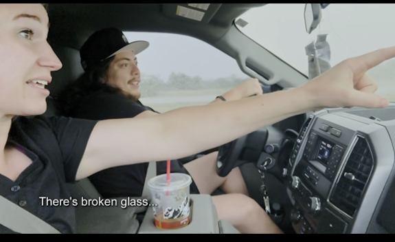 When we check back in with the road trippers, Christine and David are making their way in the moving truck, when Mykelti and Tony– with a car full of kids– receive a series of tornado warnings. As Mykelti tells her mom over the phone what’s going on, she and Tony are met with a hellacious storm that brings hail hurling at (and cracking) their windshield.