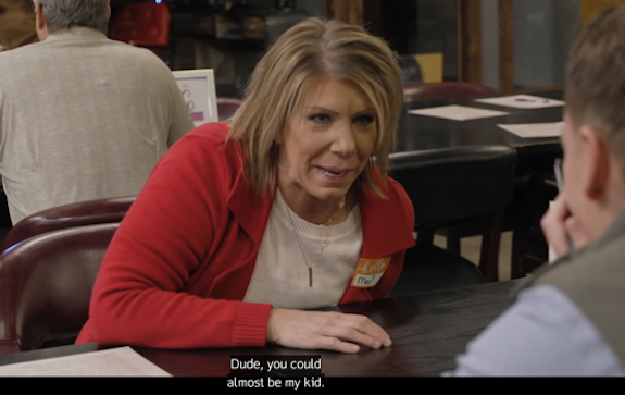 After containing herself, Meri tells viewers she’s not looking for a “spark” at this speed-dating event, she’s just looking for someone willing to have their mug featured on this dumpster fire of a TV show she can have a conversation with that’s not about her frizzy-haired former husband.