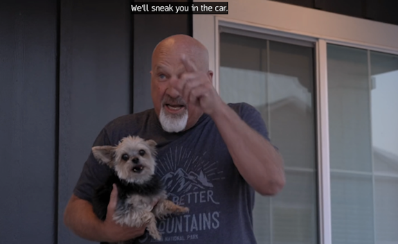 While Christine demands that David not get near the squirrel-sized dog, David makes several attempts to bring the little one along on the road trip, much to Christine’s annoyance.