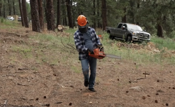 Over in Flagstaff, Kody is armed with a chainsaw which is in itself a frightening concept. He’s wearing an oversized helmet and— of course— his gloves as he swings this thing around, all while reminding viewers that Coyote Pass continues to be a point of contention among himself/Robyn, Janelle and Meri. Despite all his safety gear, Kody does not appear to be wearing any sort of kidney protection, so there’s a chance that his one intact kidney could be at risk.