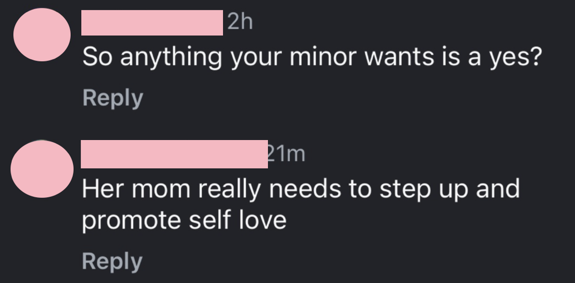“So anything your minor wants is a yes?” one person asked the former MTV star.