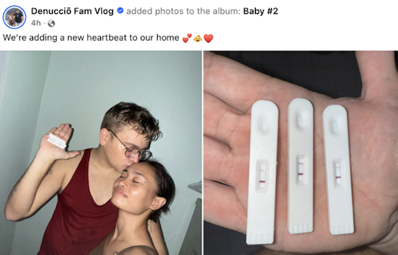 “We’re adding a new heartbeat to our home,” the couple posted Friday on their joint Facebook page.