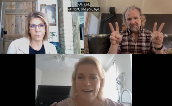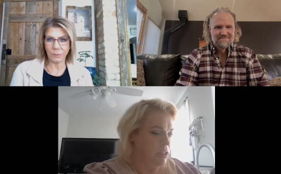 Back in Flagstaff, Kody sits down in one of the (many) poorly decorated Mountain Mansion rooms to do a video chat with Meri and Janelle about the “good news” he has regarding their Coyote Pass property. Before kicking off the business discussion, Kody tries– and fails miserably– to make small talk with his exes.