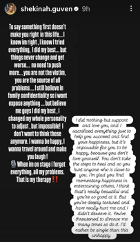 Hours later, Shekinah responded to Sarper’s Instagram Story, insisting that she supported and sacrificed everything to help him succeed, but that finding happiness is “impossible” for Sarper, as he doesn’t love himself.