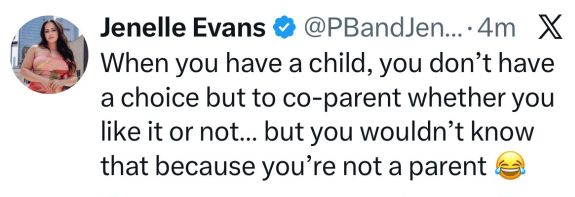 “When you have a child, you don’t have a choice but to co-parent whether you like it or not…but you wouldn’t know that because you’re not a parent,” a smug Jenelle wrote.