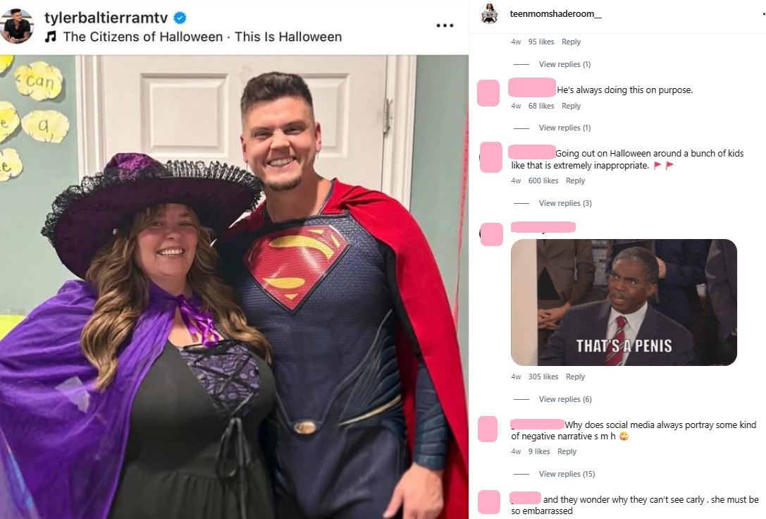 “I wanted to talk about the Halloween ‘incident’ with your ding-a-ling,” Catelynn said, before repeating some of the many (many) comments the post garnered from fans who were not thrilled to see the outline of Tyler’s baby batter blaster in the family Halloween photos.