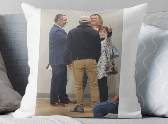 Nothing quite says “holiday cheer” like Barbara Evans flipping off a camera! This gorgeous pillow will be the jewel of any home, whether it’s used to decorate a sofa, or to rest your head on while you dream of Barb’s soothing cackle laugh. Whoever you gift this treasure to will never tell you to “Eff Off” again!