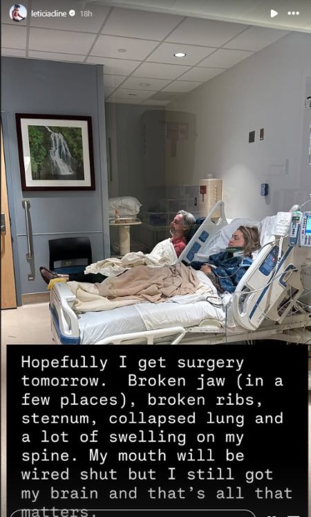 Leticia later posted an update to her Instagram Story, revealing that she had suffered a broken jaw, broken ribs, sternum, collapsed lung and swelling on her spine.