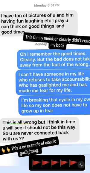 “So u are never connected back with us ??” Amy’s relative added– a remark that Amy pointed out to followers was “an example of classic gaslighting,” while noting that the family member who sent her the texts “clearly” hadn’t read her 2025 memoir, Holy Disruptor.