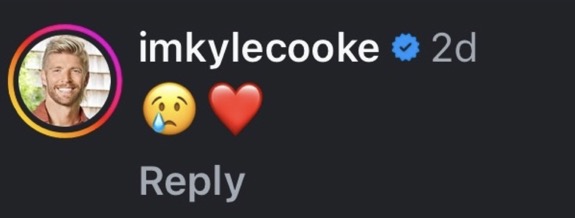 Kyle went on to comment a crying emoji and heart emoji on a clip of the segment that was posted to Instagram.