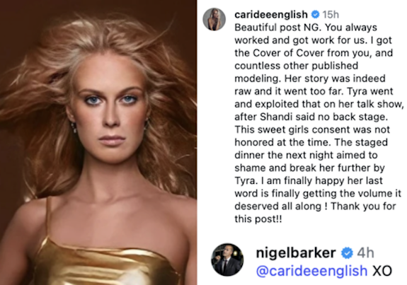 Cycle 7 winner CariDee English also showed up in the comment section of Nigel’s post to compliment him for the work they did together, as well as commend him for speaking out about Shandi’s story following the release of the docuseries.