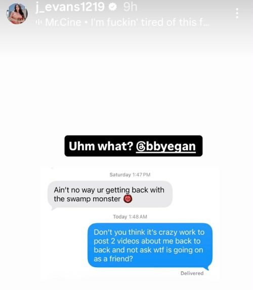 UPDATE! Jenelle was not happy to see Gabbie posting about her swamp-love situation. On Wednesday, she posted a screenshot of a text she sent to Gabbie. The screenshot show that Gabbie did, indeed, send Jenelle a private text on Saturday asking if she and Swamp Monster David were back together, a text that Jenelle didn’t respond to until today.