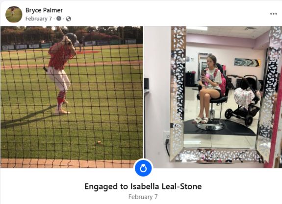 According to Bryce’s Facebook status, the proposal took place on February 7. Isabella also announced the engagement on her Facebook page but has since taken it down or made it private.