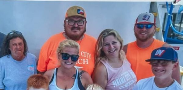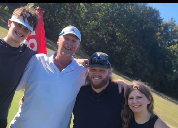 Hunter with his dad and stepmom and other family member..