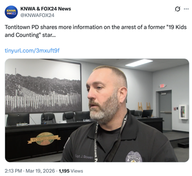 Captain J. Bowen of the Tontitown Police Department is sharing details about the events that led to Wednesday’s arrest of former Counting On star Joseph Duggar.