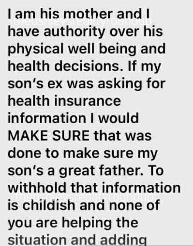 “If my son’s ex was asking for health insurance information I would MAKE SURE that was done to make sure my son’s a great father,” Jenelle insisted. “To withhold that information is childish and none of you are helping to the situation and adding stress to it…”