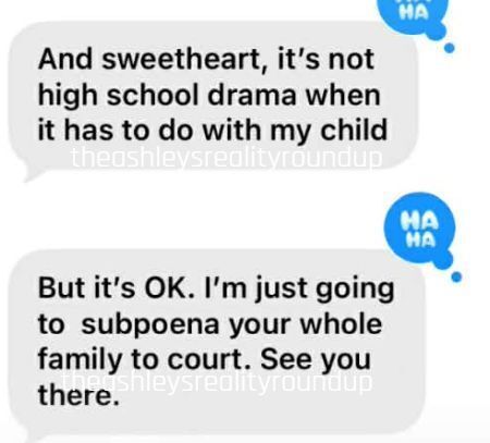 In messages shared with The Ashley by Cayely, Jenelle threatens to subpoena the entire Lewis family to come to court because they’re not doing what she wants.
