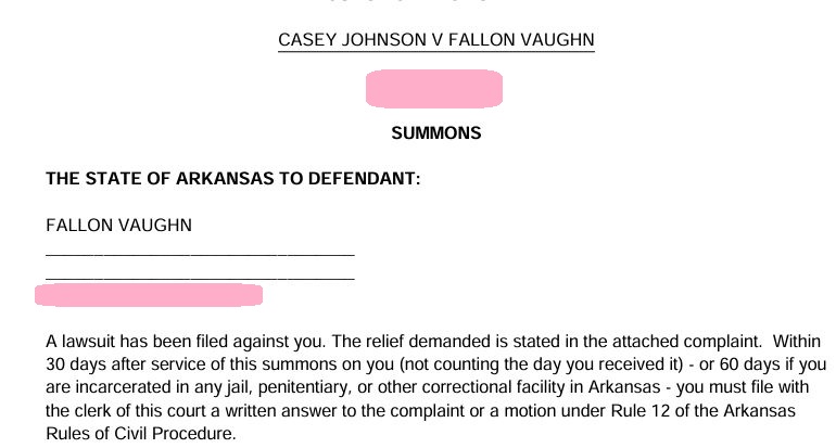 Court records show that Falen received a court summons on Wednesday. She has 30 days to file a written response with the court.