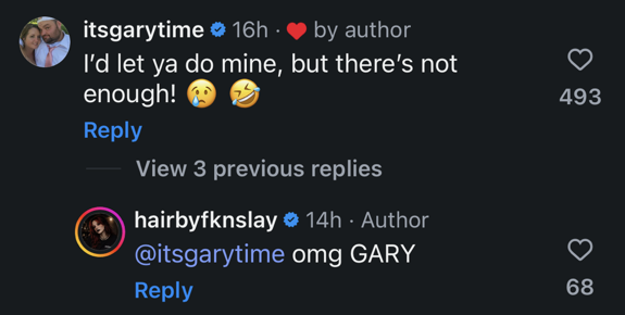 The following day, Slay received more ‘Teen Mom’ support on her post, with Gary joking that he would let her do his hair, “but there’s not enough!”