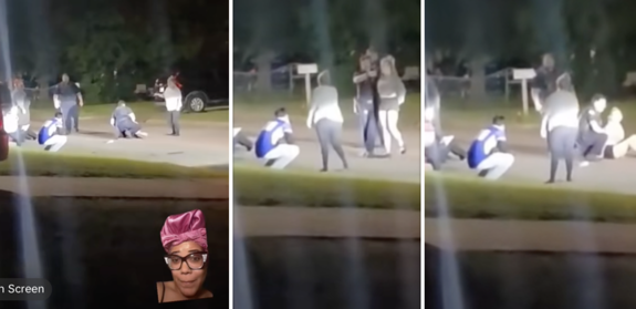 In a video posted to TikTok by @MichelleAnnXO, the 39-year-old grandmother is seen sitting in the middle of a street as a police officer cuffs her and proceeds to walk her to his police car.